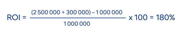 Посмотрим на пример расчета ROI: инвестиции в обучение команды новой методологии (например, Scrum) — 700 000 руб. Это позволило ускорить релиз нового функционала на 1 месяц. Прибыль от раннего выхода на рынок оценивается в 3 млн руб.